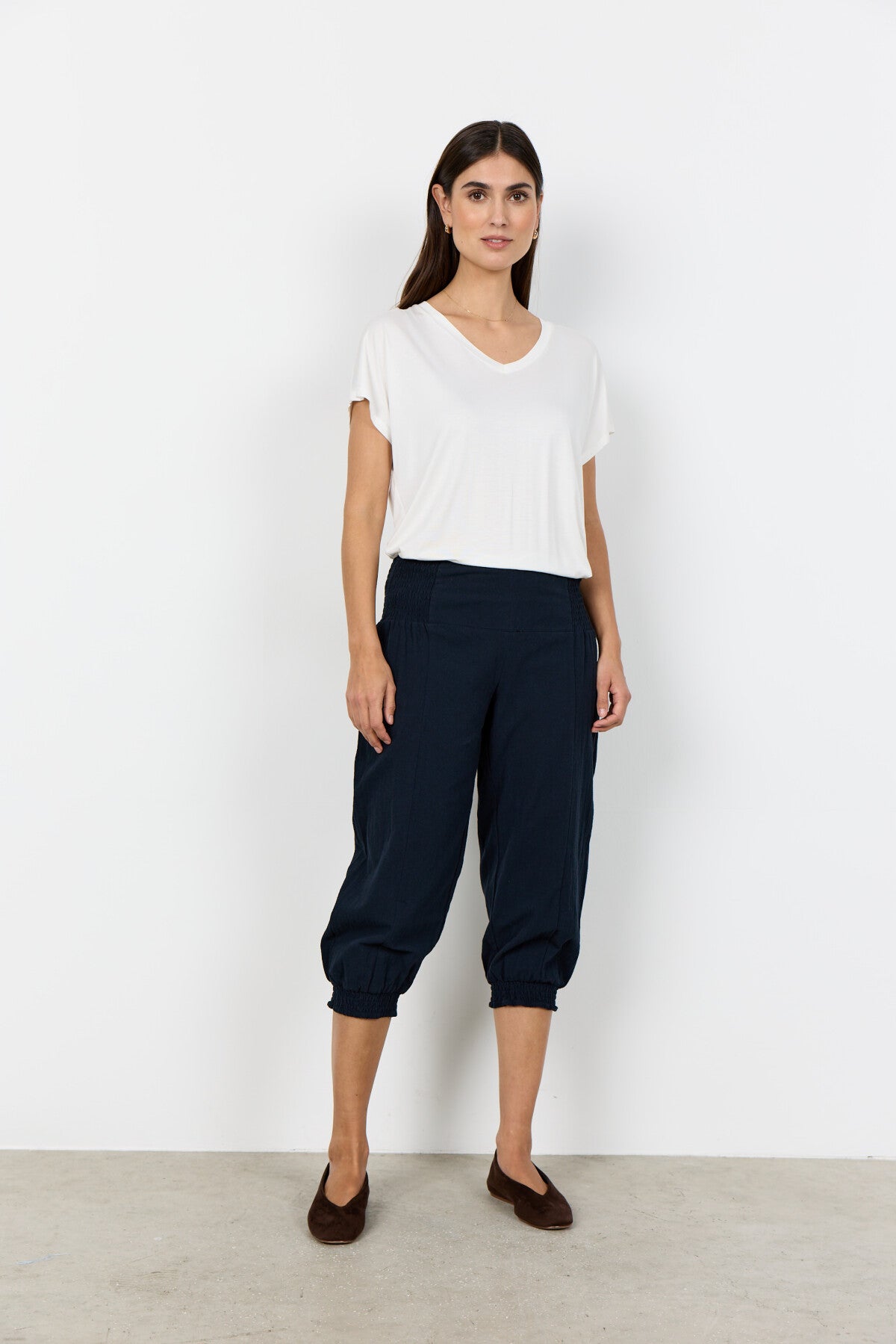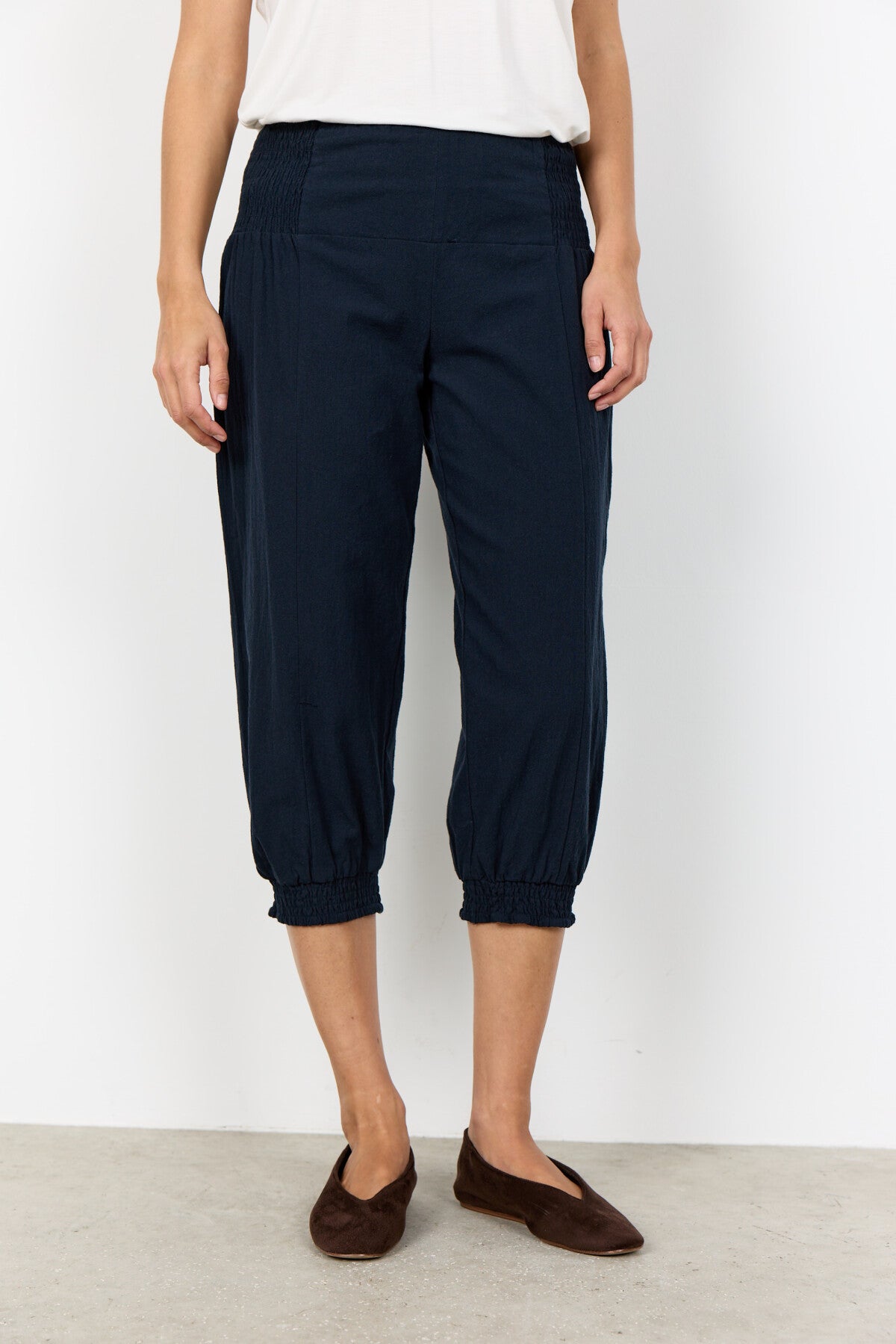 SC-Cissie 47-B är snygga byxor i 100% bomull. Byxorna har feminina smockdetaljer på anklarna och i midjan. Den mjuka kvalitén gör byxorna superbekväma, - snygga och bekväma på samma gång! Styla dem med en klassisk skjorta eller din favorittröja.