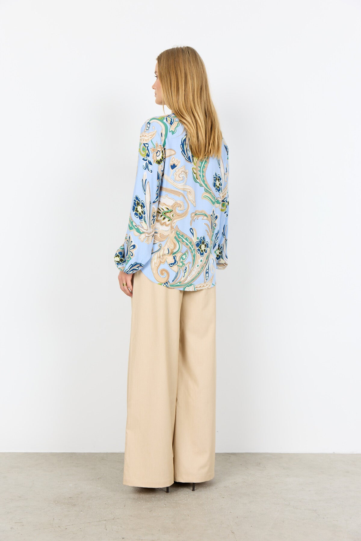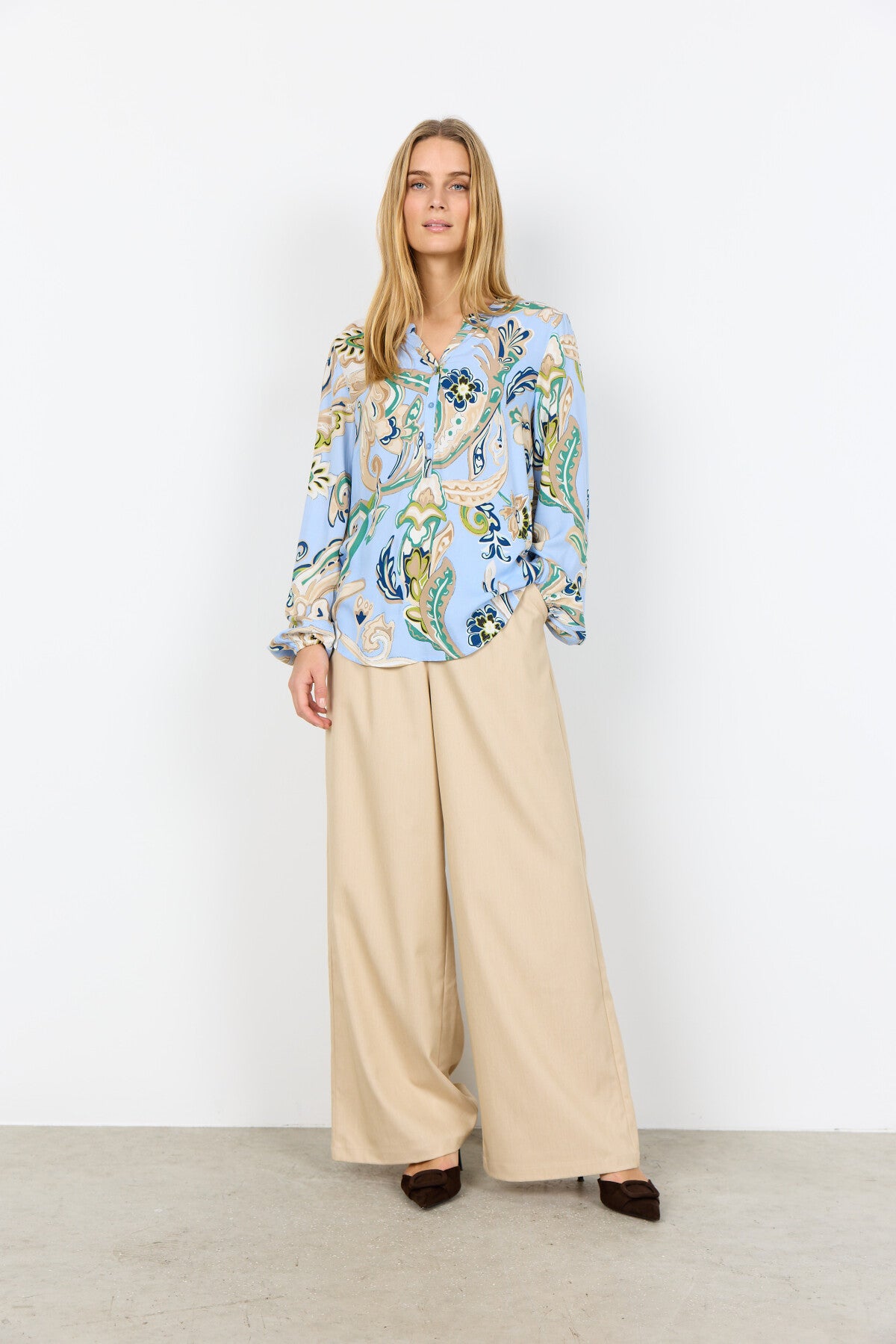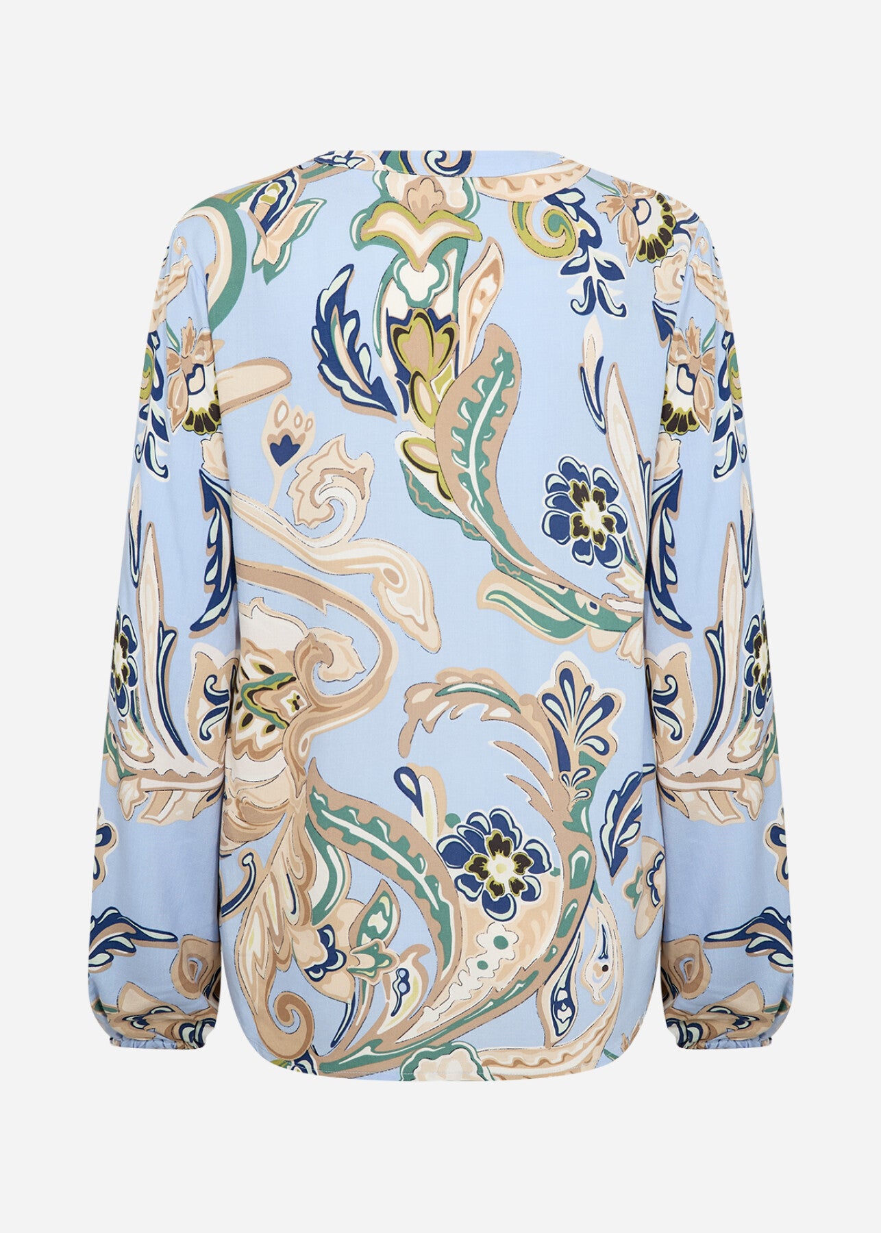 SC-CASJA 2 är en blus tillverkad av 100% LENZING™ ECOVERO™ viskos. Blusen har V-ringad hals med en fin bandkrage, knäppning framtill och ett elegant paisleymönster som ger en sofistikerad känsla. Kombinera den med skräddarsydda byxor eller en jeanskjol för en polerad och trendig look.