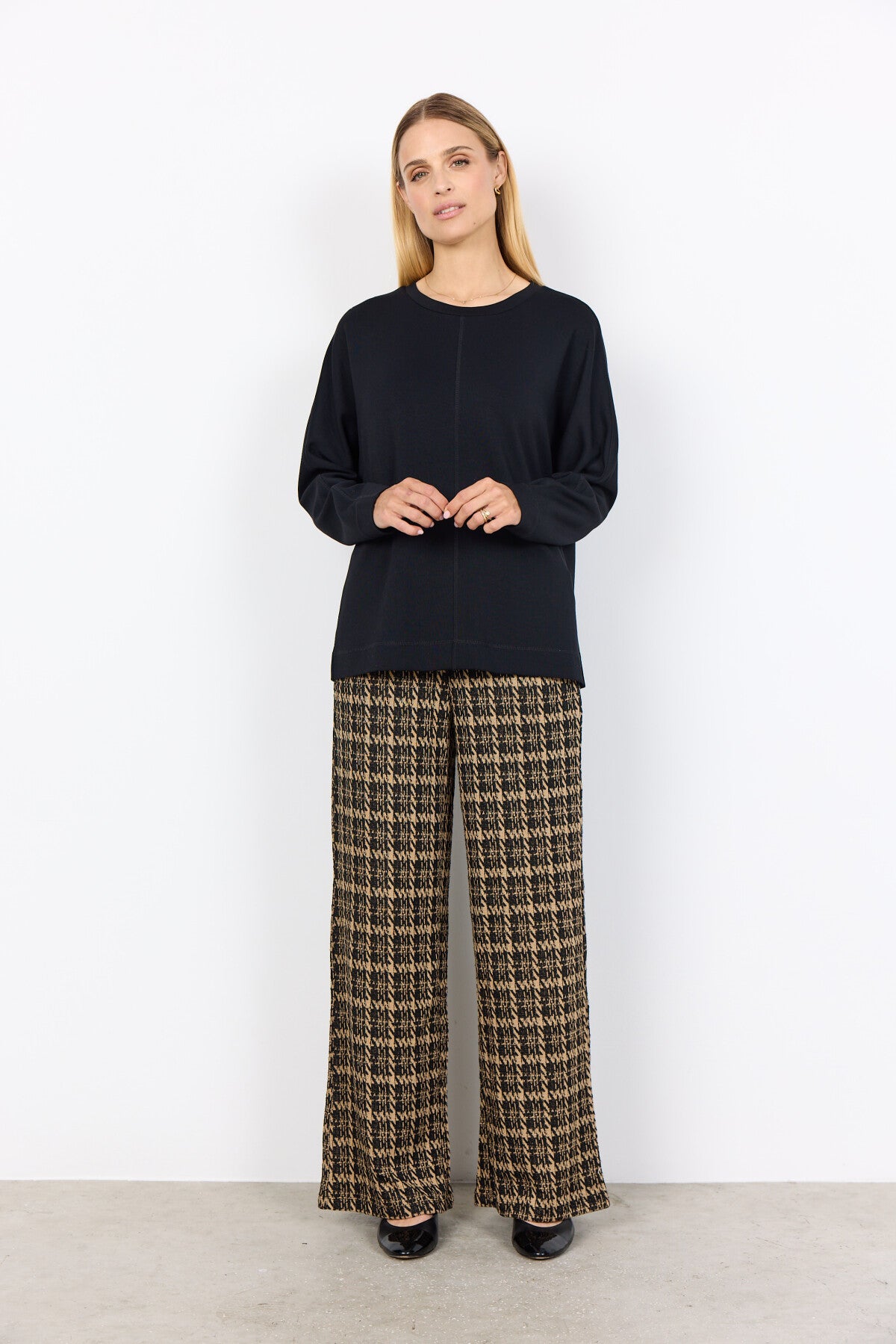 SC-BANU 262 är en blus tillverkad av 48% modal, 48% polyester och 4% elastan. Den har en rund halsringning, en rak skärning och synliga sömdetaljer framtill och runt manschetterna. Kombinera den med skräddarsydda byxor eller en pennkjol för en strukturerad, modern look.