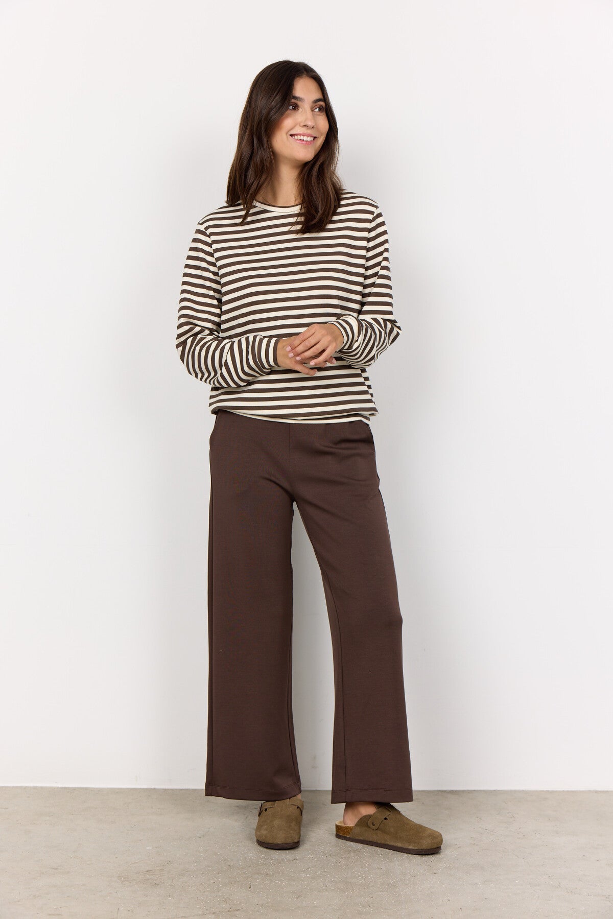 SC-BARNI 42 är en blus tillverkad av 48% modal, 48% polyester och 4% elastan. Den har en rund halsringning, ett randigt tryck och långa ärmar. Matcha med denim eller bekväma byxor.