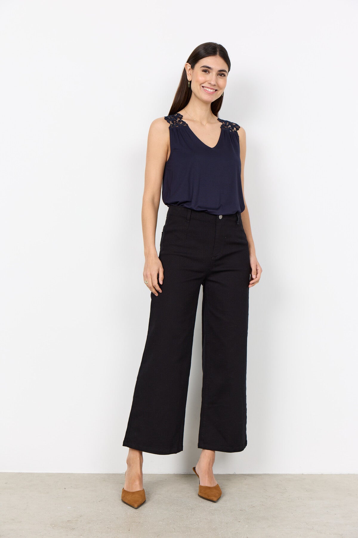 - Vår modell är 176 cm och använder storlek 38